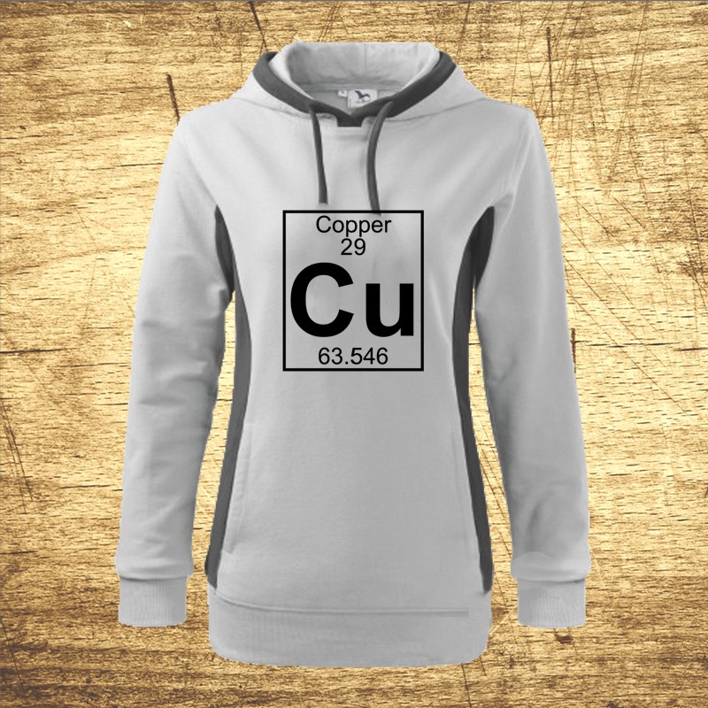 Dámska mikina s kapucňou s motívom Cu – Meď