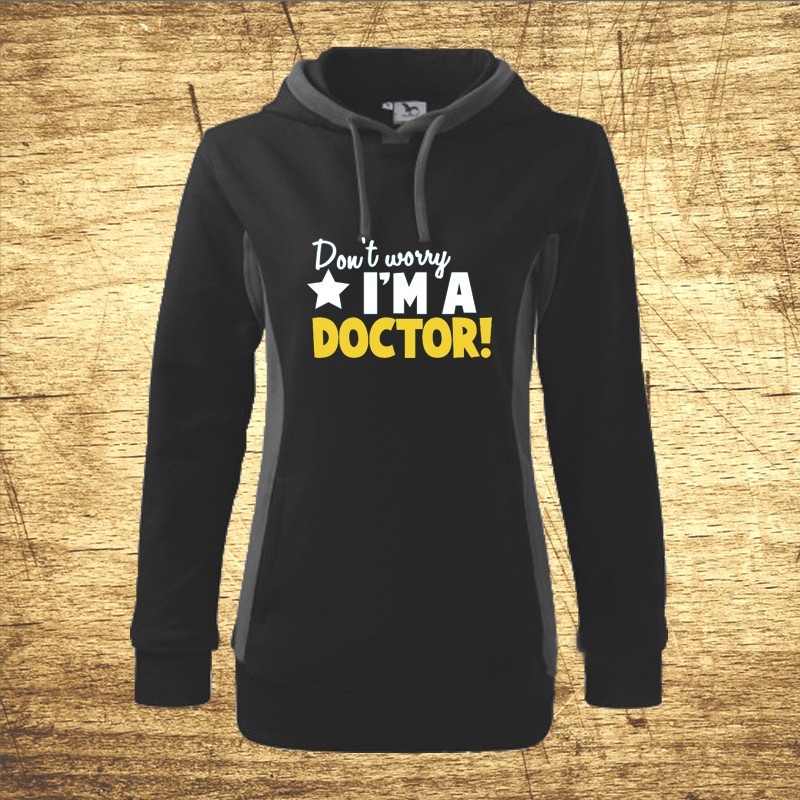Dámska mikina s kapucňou z edície povolaní pre doktorov a sestry – Don´t worry, I´m a doctor!