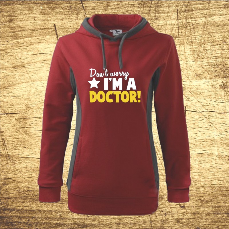 Dámska mikina s kapucňou z edície povolaní pre doktorov a sestry – Don´t worry, I´m a doctor!