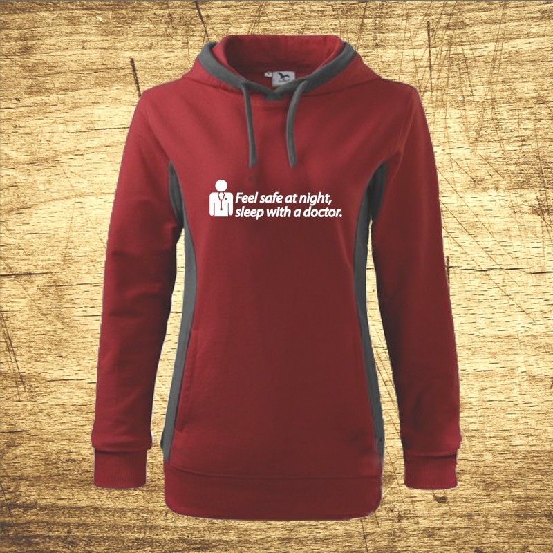 Dámska mikina s kapucňou z edície povolaní pre doktorov a sestry – Feel safe at night, sleep with a doctor.
