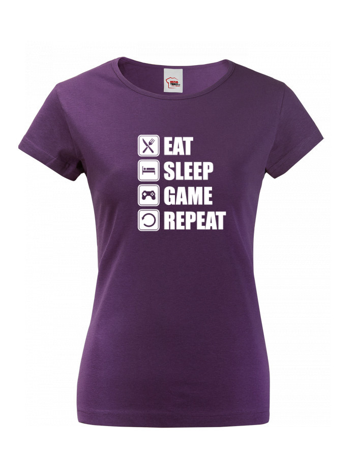 Dámské Geek/hráčské triko EAT, SLEEP, GAME, REPEAT - dokonalý dárek