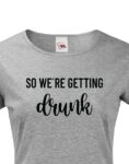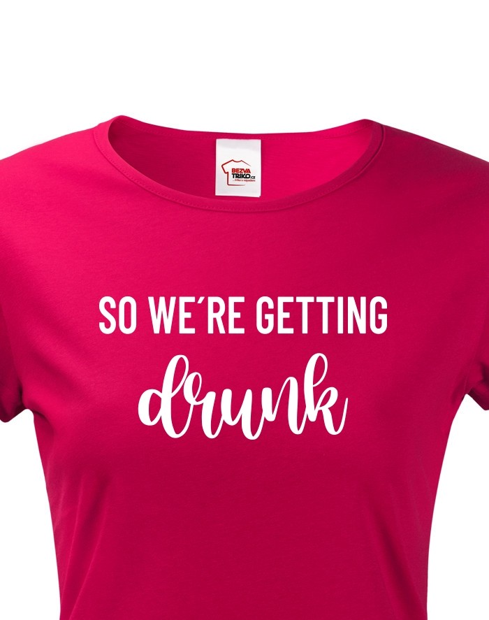 Chystáte se na rozlučku se svobodu a hledáte stylová rozlučková trika. Tohle triko bude skvělé pro nezapomenutelnou párty. Triko So we´re getting Drunk je určeno jak jinak než pro tým nevěsty. Trika budou skvělá v černo bílé verzi, vedle nešlápnete ani s ostatními barevnými variantami.