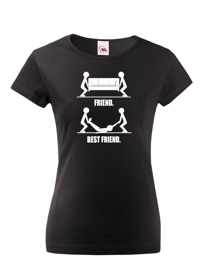 Víš jaký je rozdíl mezi kamarádkou a nejlepší kamarádkou? Prohlédni si motiv na tričku ze kterého je to hned jasné všem. Kamarádka ti pomůže se stěhováním, ale nejlepší kamarádka ti pomůže i s mrtvolou. :) Dámské tričko Friend and Best Friend je ideální na párty, ale také jako dárek pro tvou nejlepší kamarádku