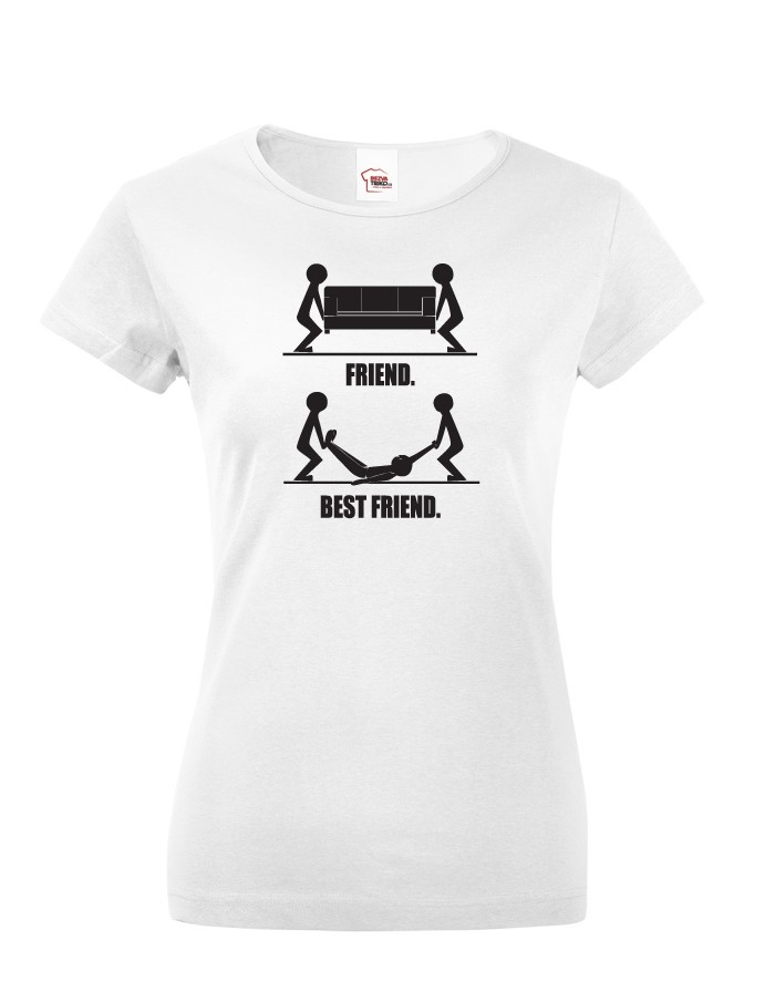 Víš jaký je rozdíl mezi kamarádkou a nejlepší kamarádkou? Prohlédni si motiv na tričku ze kterého je to hned jasné všem. Kamarádka ti pomůže se stěhováním, ale nejlepší kamarádka ti pomůže i s mrtvolou. :) Dámské tričko Friend and Best Friend je ideální na párty, ale také jako dárek pro tvou nejlepší kamarádku