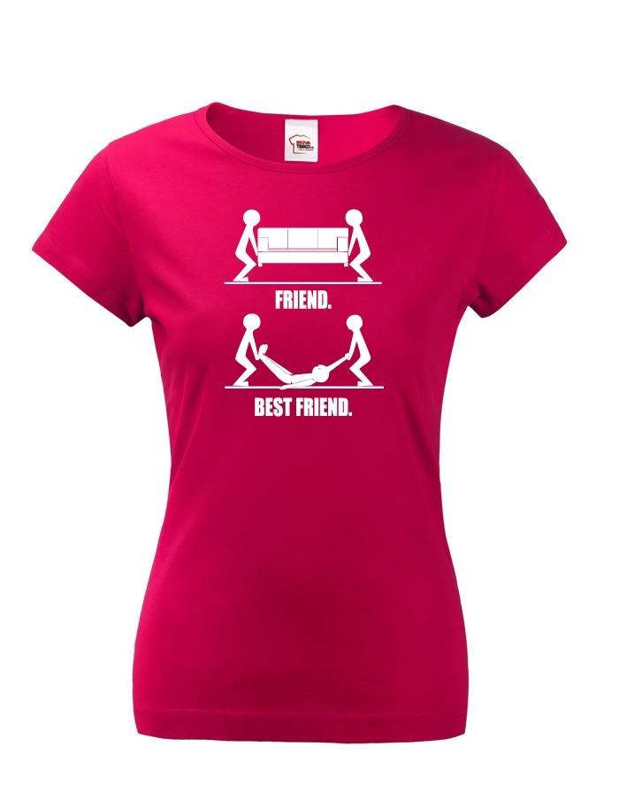 Víš jaký je rozdíl mezi kamarádkou a nejlepší kamarádkou? Prohlédni si motiv na tričku ze kterého je to hned jasné všem. Kamarádka ti pomůže se stěhováním, ale nejlepší kamarádka ti pomůže i s mrtvolou. :) Dámské tričko Friend and Best Friend je ideální na párty, ale také jako dárek pro tvou nejlepší kamarádku