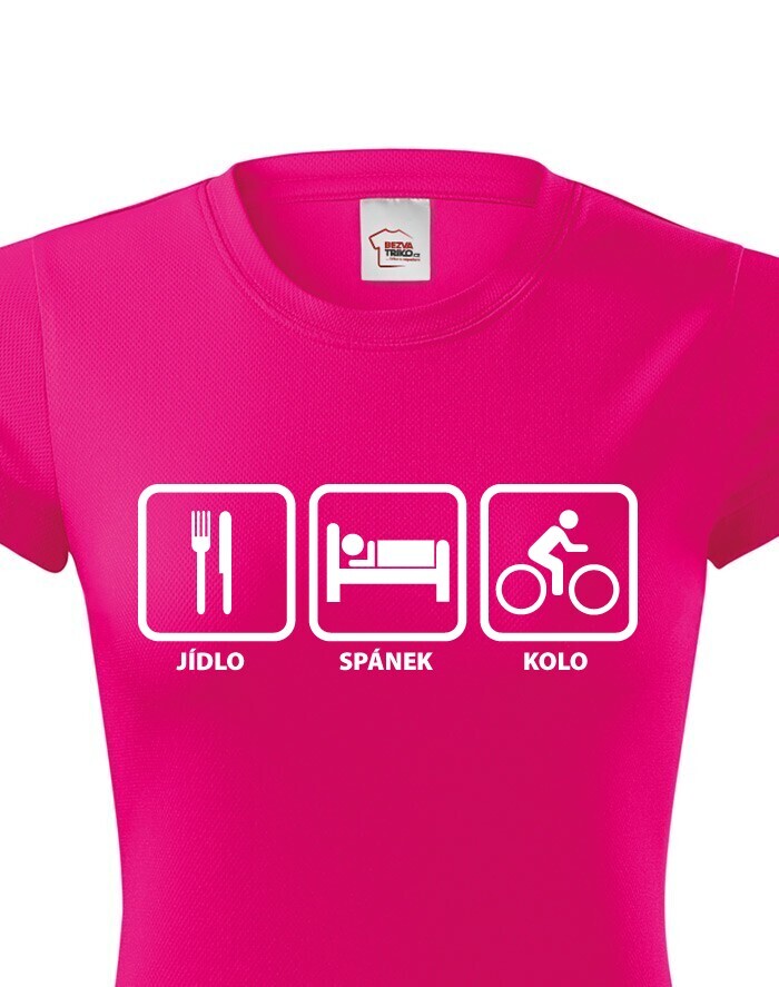 Dámské tričko Jídlo-spánek-kolo ukáže všem, kam vás vaše srdce táhne