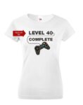 Dámské tričko k 40. narozeninám – Level complete – s věkem na přání