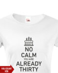 Dámské tričko s potiskem NO CALM YOU ARE ALREADY „Váš věk“ bude ideálním narozeninovým dárkem. Nezapomeňte nám do poznámky doplnit věk, který budeme tisknout na tričko. Triko vtipně popíchne a rozesměje. Tričko NO CALM říká, že je trochu čas na paniku, protože je tady další rok navíc. ;-)