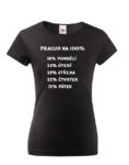 Těžká šichta? Samozřejmě celý týden se pracovalo na 100 % Tohle triko je pro všechny tvrdé pracovnice kteřé dělají za každých podmínek jen a jen na „100 %“ mrk mrk.. Udělej si radost tímhle vtipným trikem s potiskem.