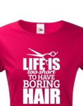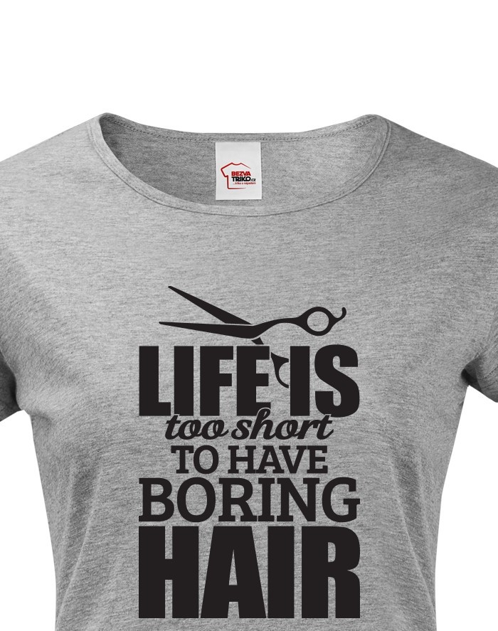 Triko s jednoduchým, ale o to víc vkusným potiskem LIFE IS TOO SHORT TO HAVE BORING HAIR bude skvělé jak jinak než pro kadeřnice. Triko bude fajn pro kadeřnický salón nebo jako dárek k narozeninám a Vánocům pro kadeřnici. Pokud se s tímto heslem, že život je příliš krátký na to mít nudný účes, tak tohle triko je přesně pro Vás! Triko pro kadeřnice bude skvělé v červené barvě, ale ostatní barvy vypadají také s potiskem skvěle.