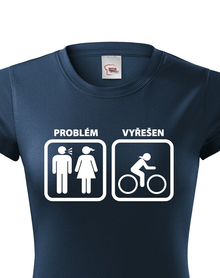 Dámské tričko Problém vyřešen - hoďte hádku za hlavu a vyražte na kolo