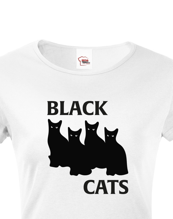 Triko s kočkou Black Cats vybočuje jemně z řady. Na triko se totiž dostalo tak nějak více koček než jedna. Jsou dokonce čtyři a nejhorší je, že jsou všechny černé. :)