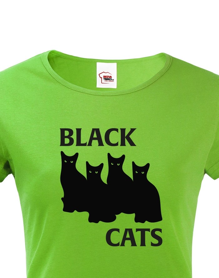 Triko s kočkou Black Cats vybočuje jemně z řady. Na triko se totiž dostalo tak nějak více koček než jedna. Jsou dokonce čtyři a nejhorší je, že jsou všechny černé. :)