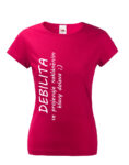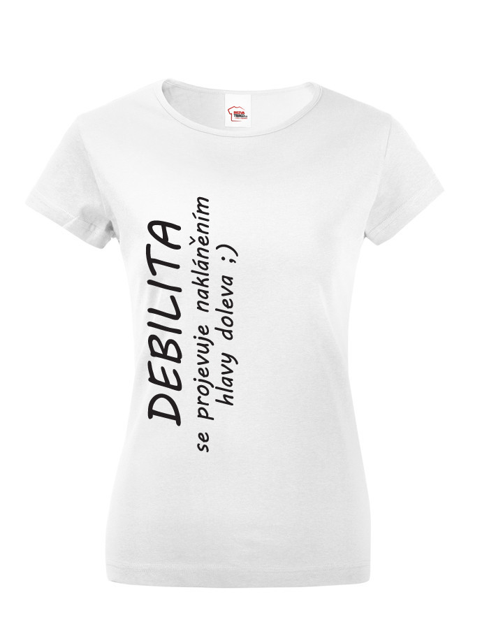 Dámské tričko s potiskem Debilita se projevuje nakláněním hlavy doleva