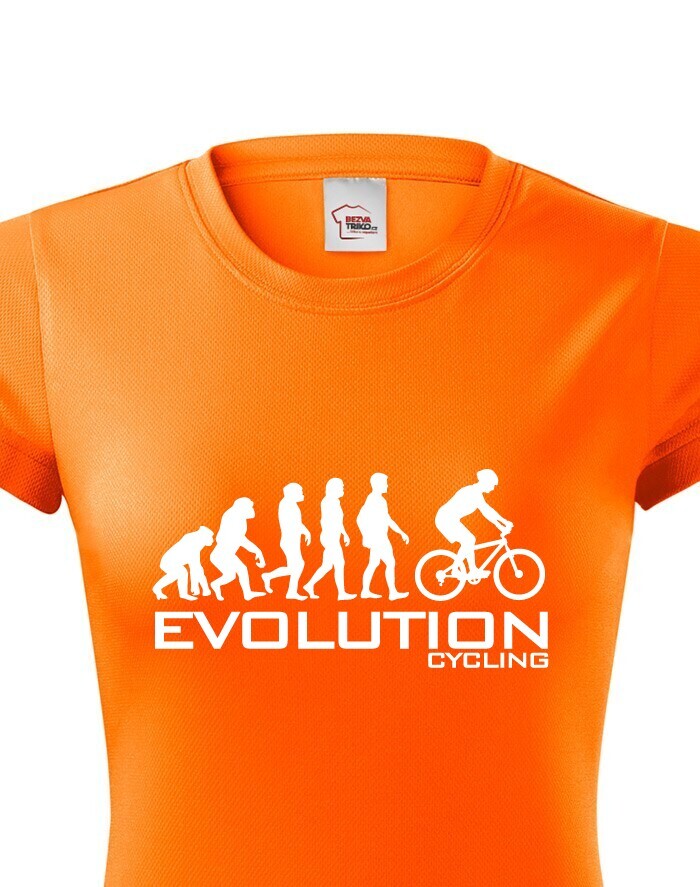 Dámské tričko s potiskem Evoluce cyklistiky. Nejoblíbenější motiv v kategorii.