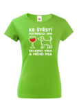 Dámské tričko s vtipným potiskem pejska Ke štěstí potřebuji jen