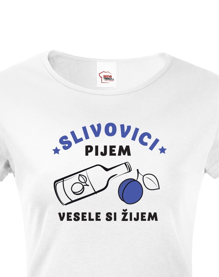 Ideální tričko s potiskem pro všechny milovníky slivovice. Potisk Slivovici pijem, vesele si žijem si zamiluje nejeden moravák! :) Triko bude skvělé jako narozeninový dárek nebo dárek k Vánocům. Pokud triko kupujete k narozeninám, rádi na triko dotiskneme věk nebo jméno oslavence. Nebojte se ozvat! Tričko s potiskem slivovice prostě musíte mít!