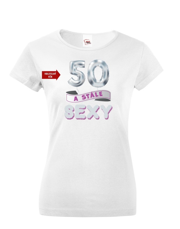 Stále sexy v každém věku. Hledáte dárek na padesáté narozeniny? Tričko s potiskem „50 a stále sexy“ se skvěle hodí jako dárek na kulaté narozeniny. Padesátka se považuje již za střední věk. Nevybíravá mládí už je dávno za námi a stáří v nedohlednu. Dámy v tomto věku přesně vědí, co jim sluší. Být sexy můžeme být v každém věku. Nezapomeňte nám do poznámky doplnit věk, který budeme tisknout na tričko. Tričko s potiskem bude originálním a vtipným dárkem k narozeninám. Na tričko Vám rádi dotlačíme jméno nebo další přání.