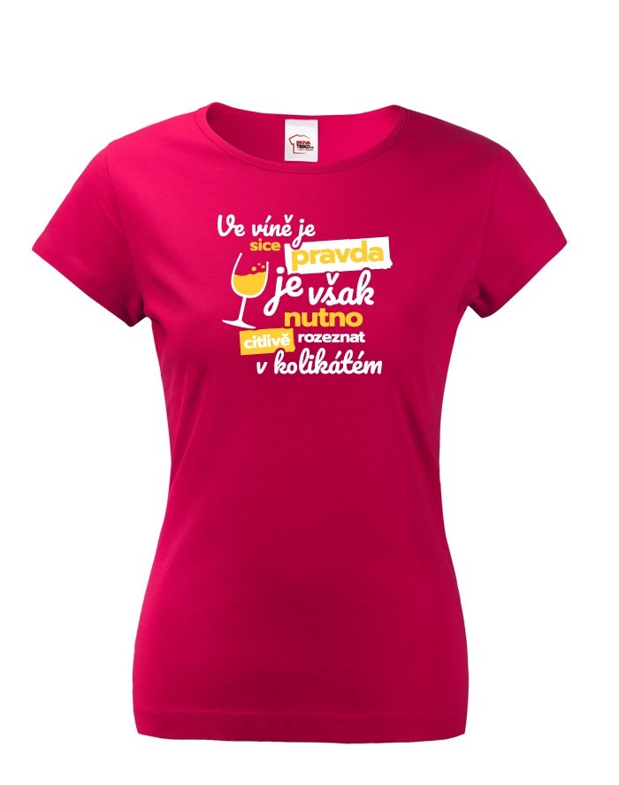 Dámské tričko - Ve víně je sice pravda je však nutno citlivě rozeznat v kolikátém