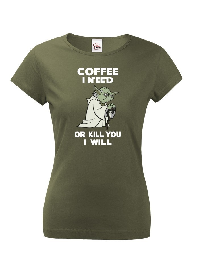 Dámské tričko - Yoda I need coffee - ideální dárek
