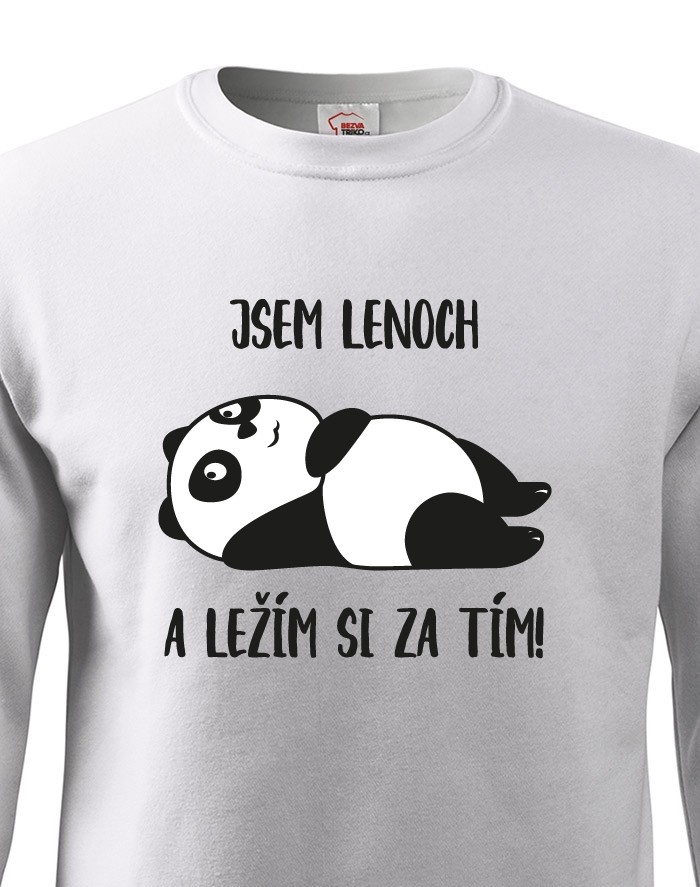 Lenoch? Ale kde že! Jen je potřeba často odpočívat. Mikinu s potiskem Jsem lenoch a ležím si za tím! si doslova zamilujete. Triko s lenošící pandou bude skvělým dárkem pro všechny, kteří umí odpočívat.