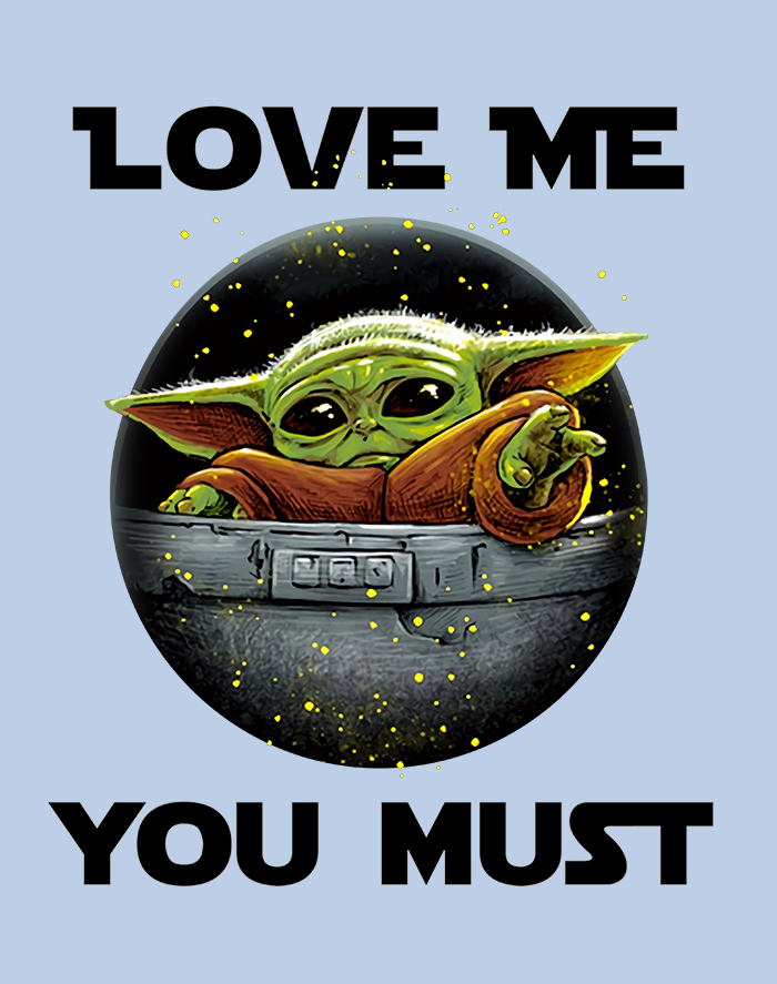 Dětské body s motivem populárního seriálu Mandalorian. Tentokrát s cukroušem Baby Yoda. Komu by tento sladký parťák Mandaloriana neučaroval? Pokud také patříš k fanouškům Star Wars, tohle body prostě musíš mít. Text LOVE ME YOU MUST dokonale vystihuje tento skvělý motiv na dětské body.