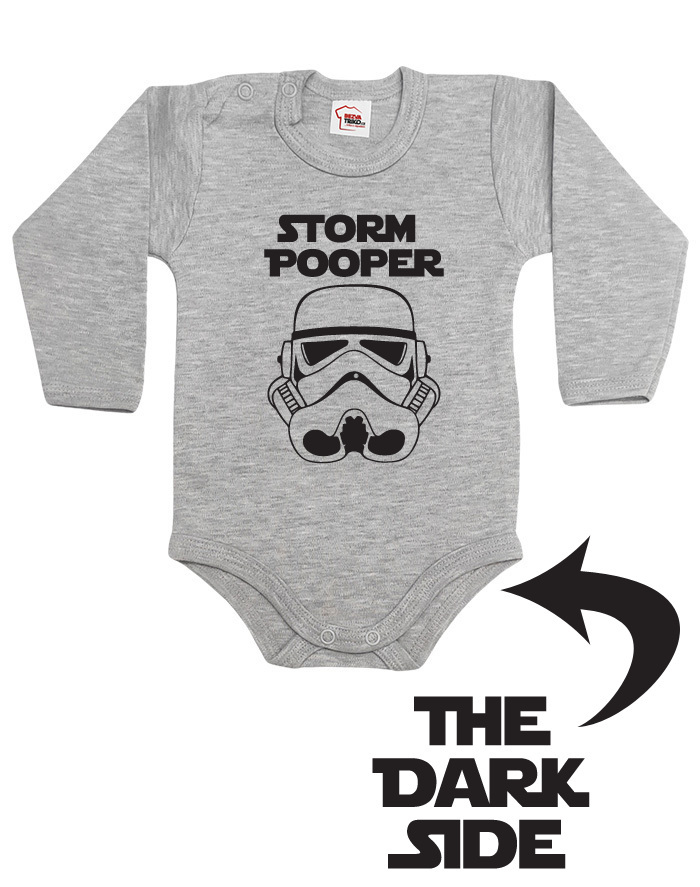 Další dětské body s potiskem na motivy ságy Star Wars. Potisk na hrudi Storm Pooper a na zadečku The Dark Side jasně ukáže, kde je opravdu „temná strana síly“. Tenhle originál rozhodně musíte mít!