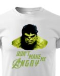 Tričko s motivem Hulk jsme tady už měli. Druhá verze přichází s plnobarevnou verzí opravdu hodně hodně naštvaného Hulka. Nápis na tričku Don´t make me ANGRY není třeba překládat /Nesnažte se mě naštvat/ přesně vystihuje povahu siláka a „zuřivce“ Hulka. Tričko se skvěle hodí jako dárek na narozeniny, svátek, Vánoce nebo jen tak pro potěšení blízkého.