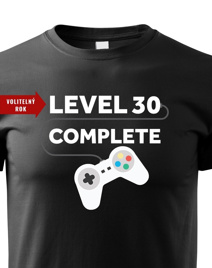 Dětské tričko k narozeninám – Level complete – s věkem na přání
