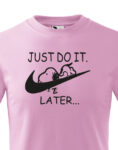 Co můžeš udělat zítra, nedělej dnes. Tak přesně tady u toho rčení jsem se inspirovali při výrobě našeho motivu na tričko. Vtipný potisk parodující značku NIKE si oblíbíte, zejména pokud vám doma naloží domácí práce. Tričko bude skvělé jako dárek, stejně jako na běžné nošení.