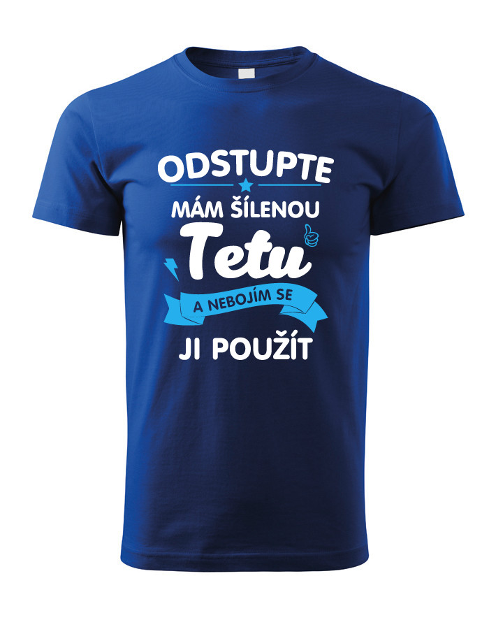 Dětské tričko s potiskem potěší každou tetičku, nebo možná taky ne? :) Triko s motivem „Odstupte, mám šílenou tetu a nebojím se ji použít“ bude vtipným popíchnutím každé tety a tetičky.