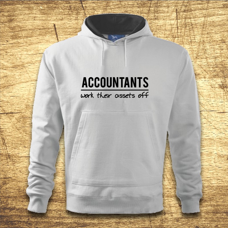 • Mikina s kapucňou s motívom Accountants work their assets off