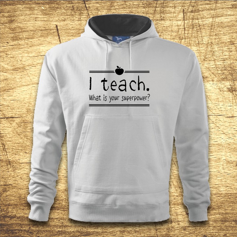 Mikina s kapucňou s motívom I teach. What is your superpower?