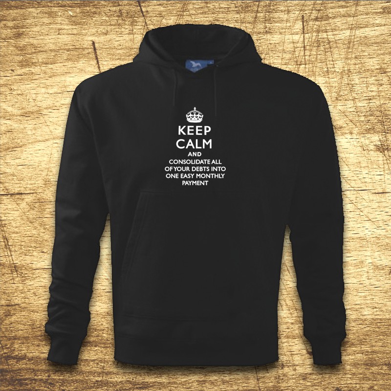Mikina s kapucňou s motívom Keep calm and consolidate.