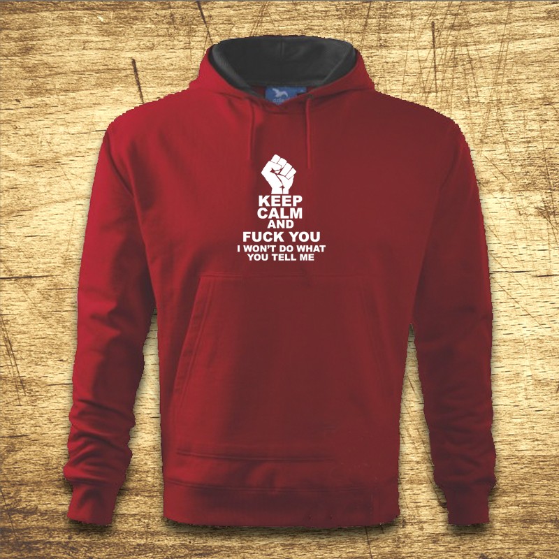 Mikina s kapucňou s motívom Keep calm and fuck you.