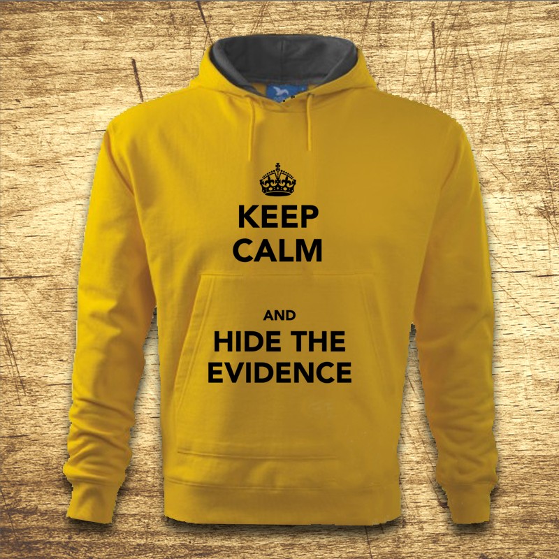 Mikina s kapucňou s motívom Keep calm and hide the evidence