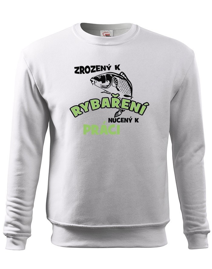 • Mikina s potiskem pro rybáře Zrozen k rybaření, nucený k práci