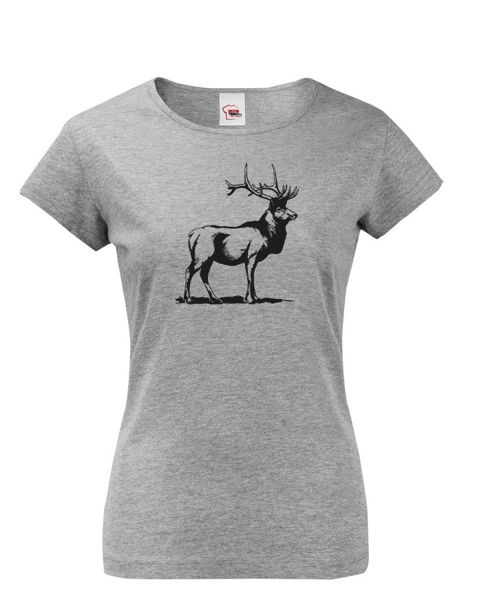 Myslivecké dámské triko s potiskem s Jelenem evropským