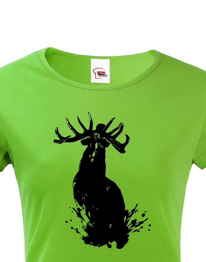 Myslivecké dámské triko s potiskem s Jelenem evropským