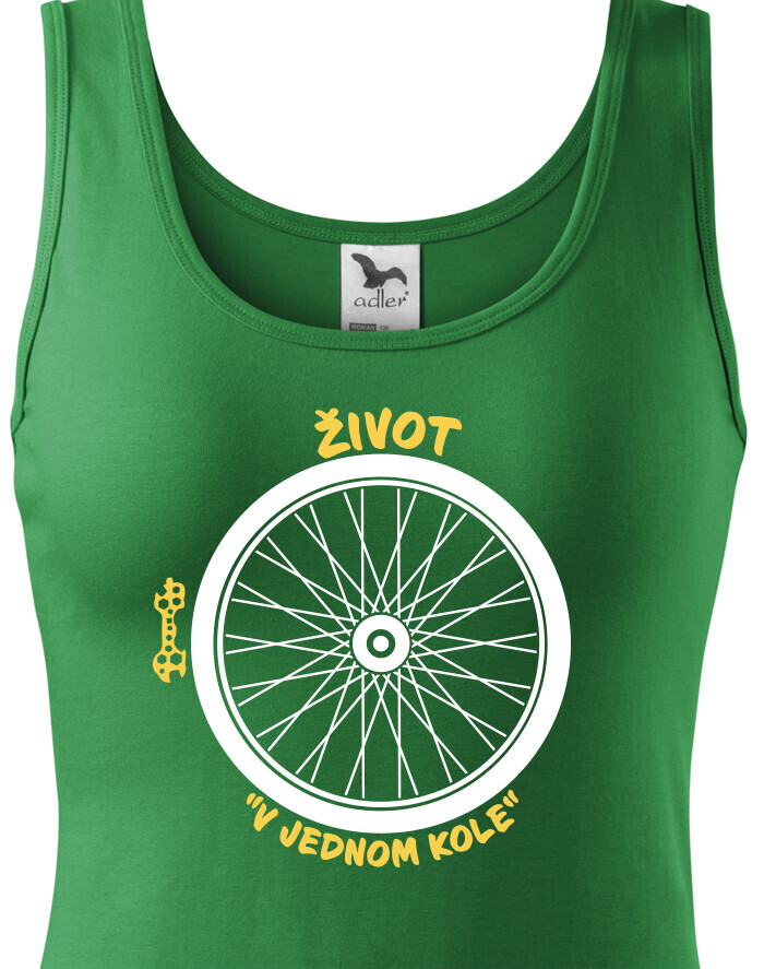 Dámské tričko s potiskem pro cyklisty Můj život v jednom kole dokonale vystihuje podstatu tohoto sportu. Pokud cyklistiku děláš srdíčkem, žádný kopec není dostatečně velký aby jsi jej nezdolal. Tak nezapomeň – život v jednom kole na kole je fajn. :)