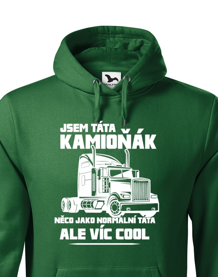 Mikina pro řidiče kamionů, zvláště pro řidiče kamionů tatínky. Mikina s potiskem Jsem táta kamioňák, něco jako normální táta, ale víc COOL! Triko udělá radost k narozeninám nebo Vánocům nejednomu opravdu COOL řidiči kamionu!