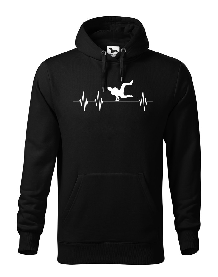 Pánská mikina s potiskem tepu parkuristy potěší každého nadšeného parkuristu. Parkur není jen tak obyčejný sport, ale je to doslova životní styl. Mikina je ideální jako dárek k Vánocům, narozeninám nebo jen tak pro radost. Skákat, skákat a prostě pořád skákat…
