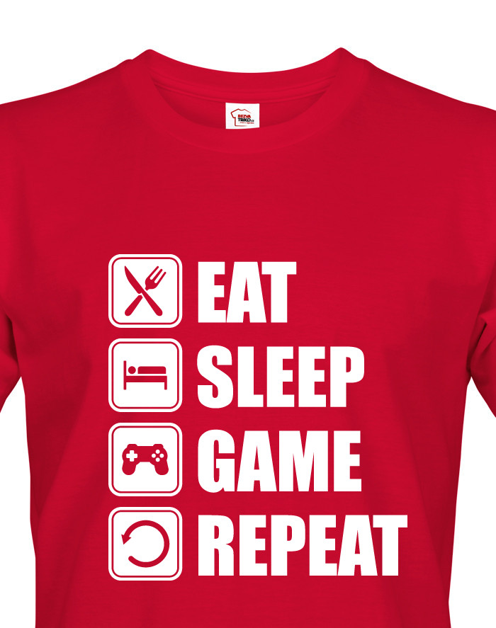 Pánské Geek/hráčské triko EAT, SLEEP, GAME, REPEAT – dokonalý dárek
