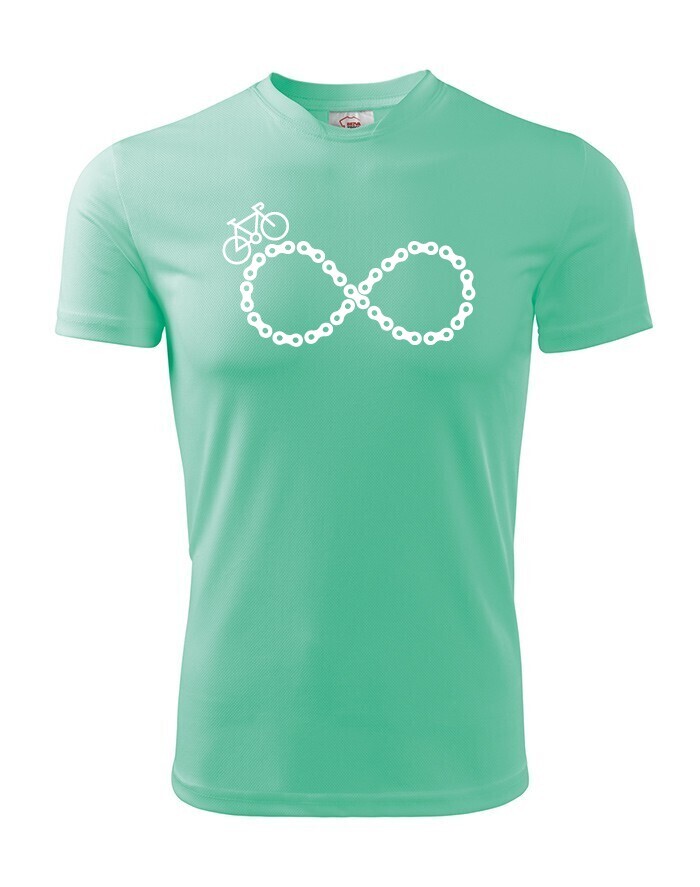 Máš na kole za sebou nepočítaně kilometrů? Určitě minimálně ještě to samé „nekonečno“ před sebou. ;-) Tak potom je tohle triko s potiskem pro tebe přesně to pravé. Minimalistický cyklo motiv na prsou s ležatou osmičkou z řetězu a mini kolem si zamiluješ.
