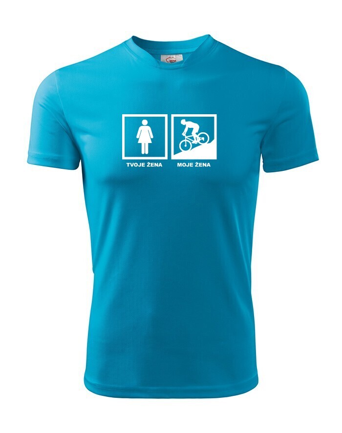 Tvá žena miluje cyklistiku a Ty si na ni patřičně hrdý? Dej to najevo tričkem s potiskem Tvoje žena – moje žena. Tričko snadno popíchne vašich přátel, ale určitě se všem bude líbit. A co je nejdůležitější, u své ženy získáte mnoho, ale že mnoho kladných bodů :-)