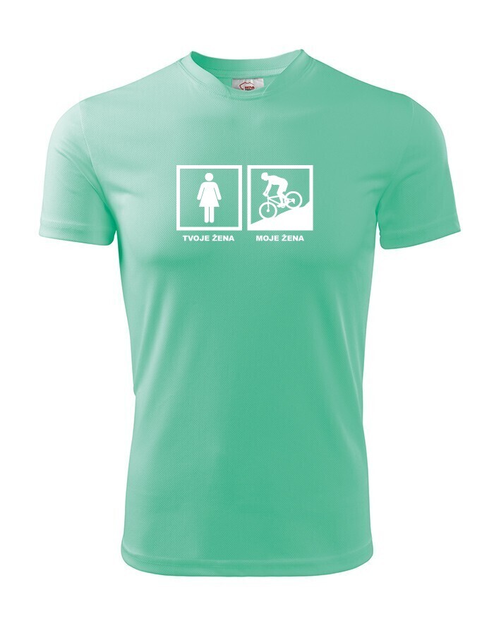 Tvá žena miluje cyklistiku a Ty si na ni patřičně hrdý? Dej to najevo tričkem s potiskem Tvoje žena – moje žena. Tričko snadno popíchne vašich přátel, ale určitě se všem bude líbit. A co je nejdůležitější, u své ženy získáte mnoho, ale že mnoho kladných bodů :-)