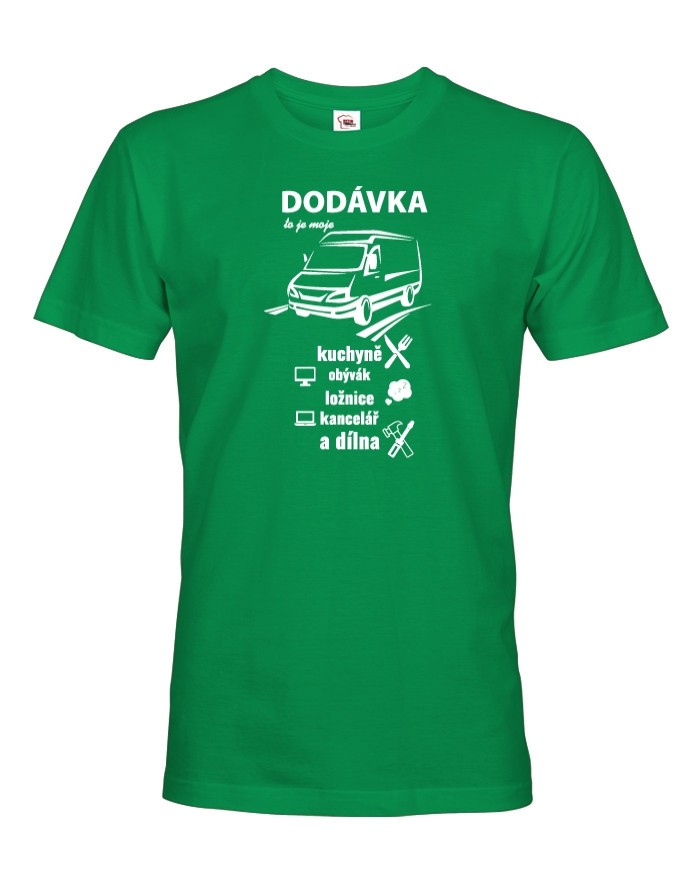 Pánské triko pro řidiče. Vtipné pánské tričko s potiskem „Dodávka to je moje kuchyně, obyvák, ložnice, kancelář a dílna.“ Přestěhovali jste celý život do dodávky? Cítíte, že dodávka je celý váš život? Není určitě nic lepší než se probouzet v dodávce. Nezapomeňte ale jednou za čas dodávku i uklidit a dopřát jí pořádný „wellness“. Tričko, které upoutá na první pohled.