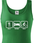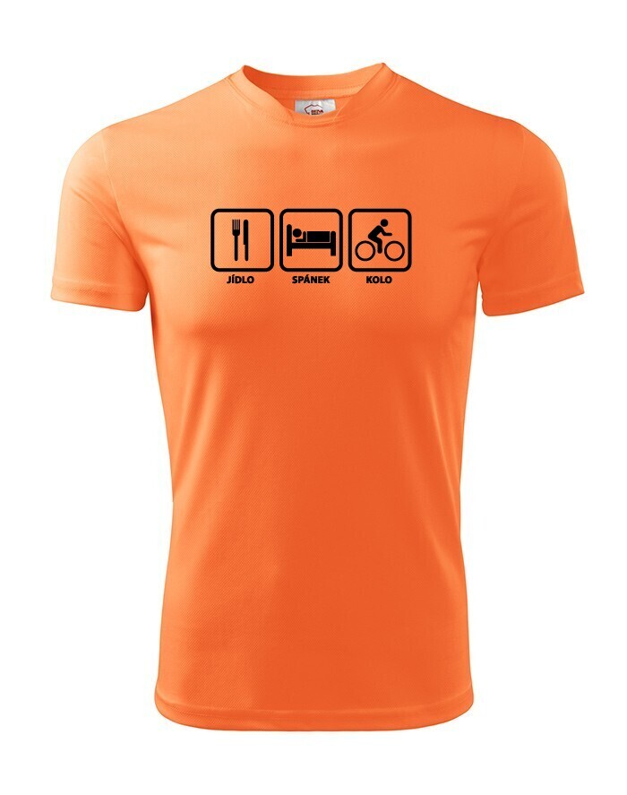 Kolo je tvoje hobby? Ke štěstí ti stačí jídlo, spánek a kolo a zase znovu? Dej to všem najevo cyklo tričkem s potiskem Jídlo, spánek kolo.Tričko nabízíme v různých barevných variantách.