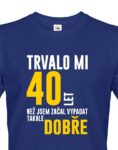 Pánské tričko k narozeninám „Trvalo 40 let než jsem začal vypadat takhle dobře“ bude skvělým dárkem ke 40- narozeninám pro tátu, dědu ale i bratra! Nezapomeňte nám napsat do poznámky věk, který budeme na triko tisknout.