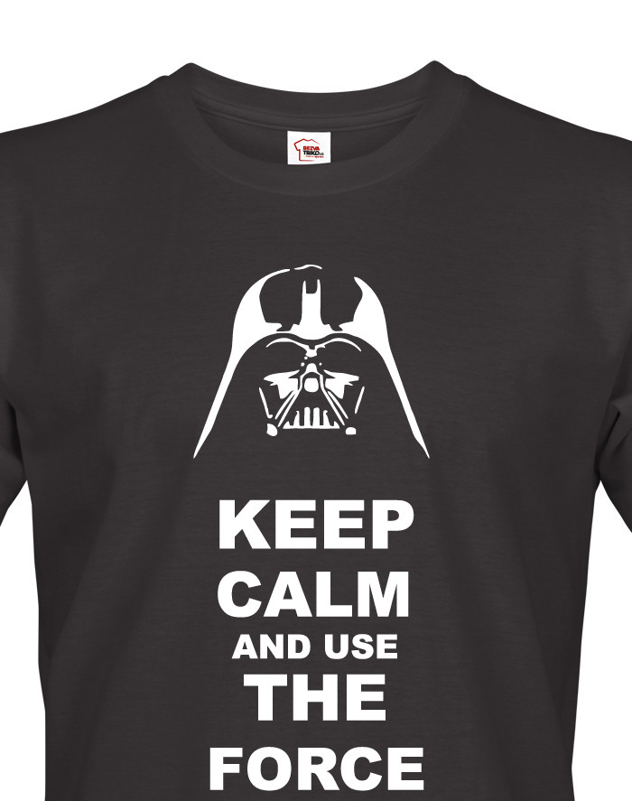 Tak trochu jiné tričko s potiskem Star Wars. Potisk Keep Calm and use the Force je pro všechny fanoušky série Star Wars nutnost. Decentní potisk bude skvělý zejména na bílém tričku nebo tmavém melíru.
